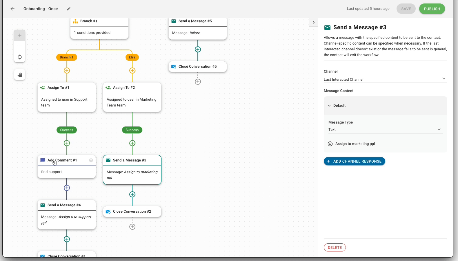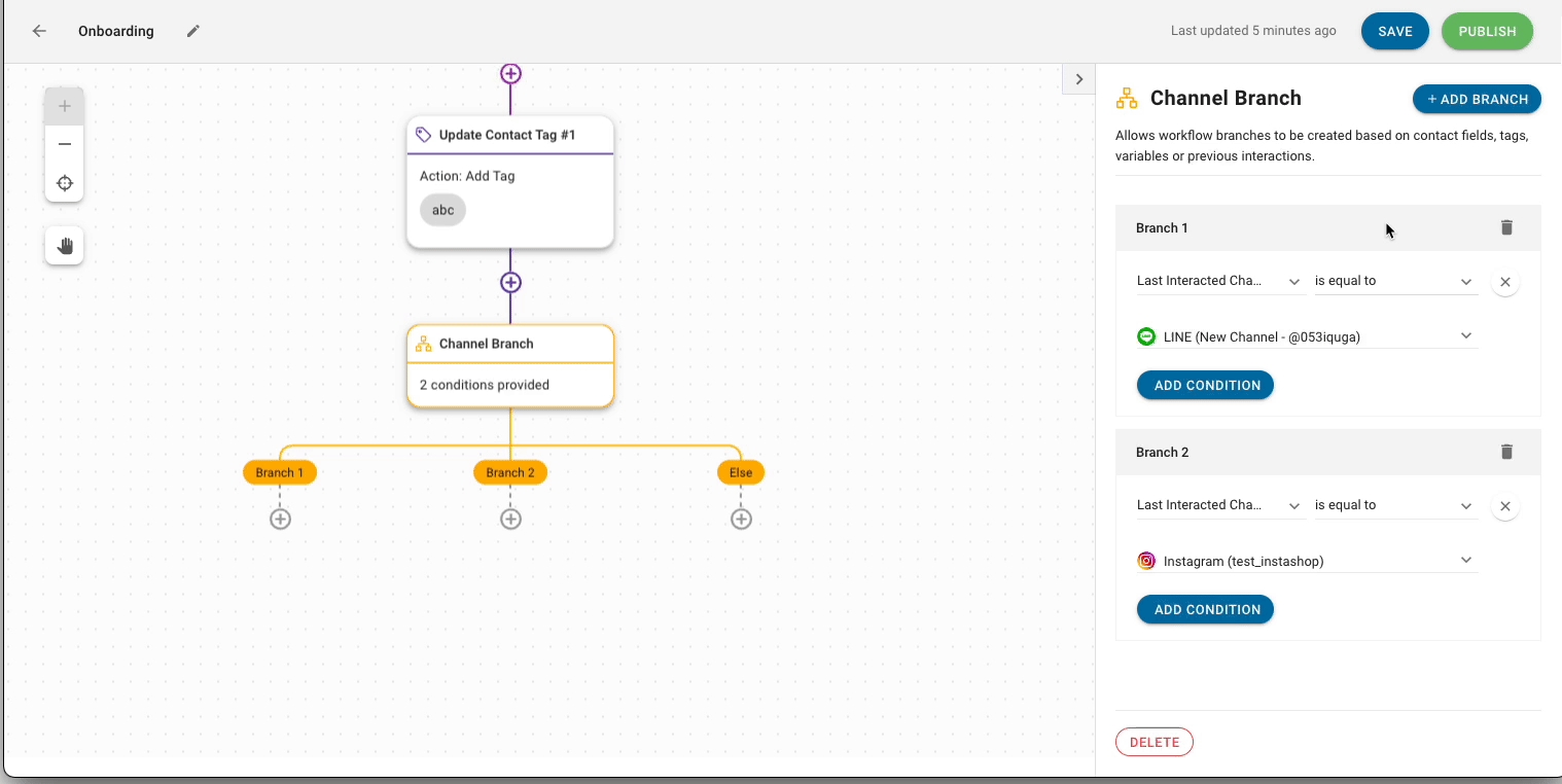 Eso no es todo. Como los contactos tienen una variedad de propósitos y necesidades de interacción, ahora puede crear ramas específicas para diferentes viajes de usuario. Establezca condiciones para dirigir los contactos a la rama correcta y cree ramas a prueba de fallos para aquellos que no cumplan las condiciones. ¿Qué te parece eso para un toque personal?