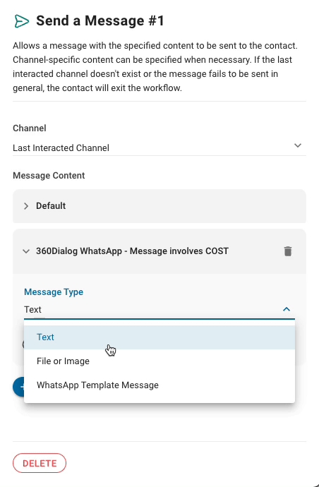 Quizás se pregunte si puede aligerar aún más su carga de trabajo y enviar mensajes de plantilla a través de flujos de trabajo. La respuesta es un sí rotundo. En el paso Enviar un mensaje, compruebe si el canal elegido admite un mensaje de plantilla.